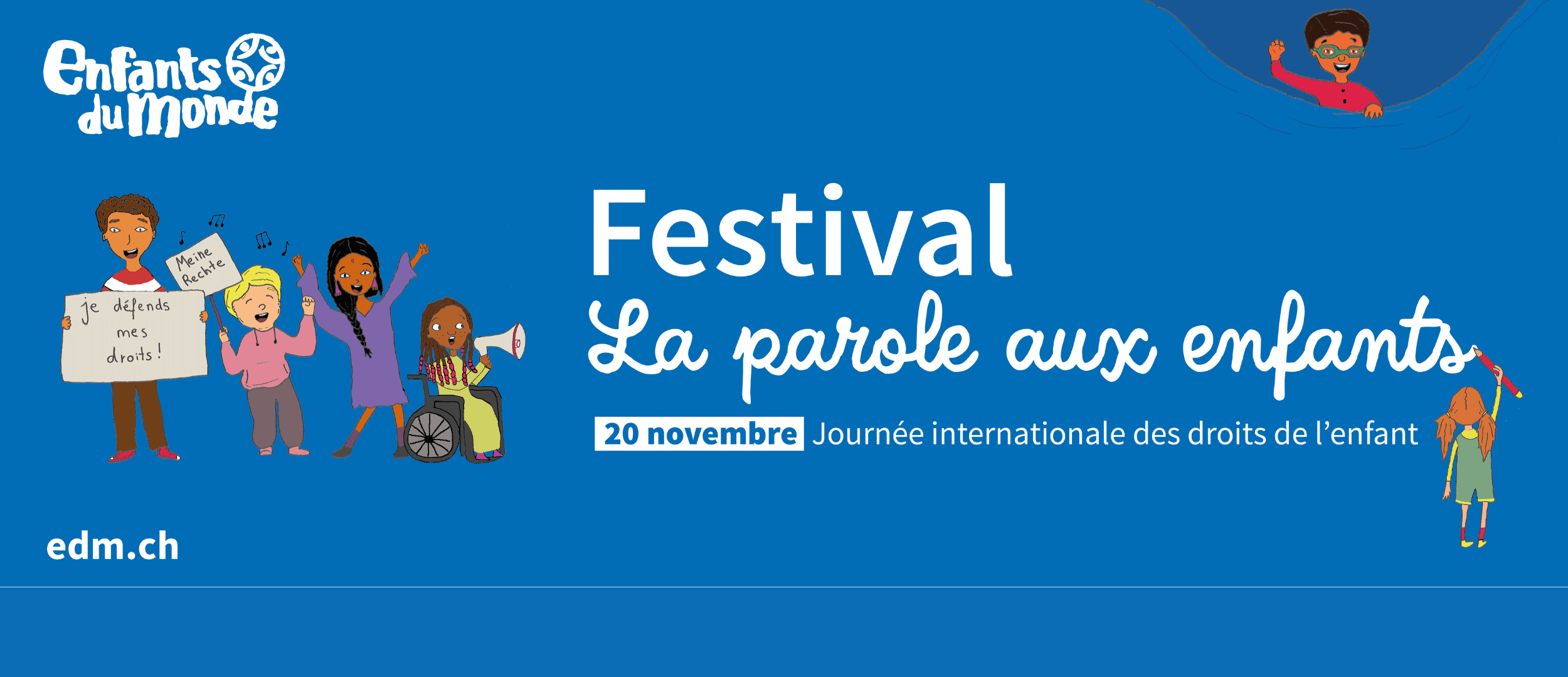 A l’occasion de la Journée Internationale des droits de l’enfant, Enfants du Monde rassemble des élèves romands lors du festival « La parole aux enfants » le 18 novembre 2022. Les enfants présenteront leurs recommandations pour améliorer le respect de leurs droits au Comité des droits de l’enfant de l’ONU et à des autorités genevoises.